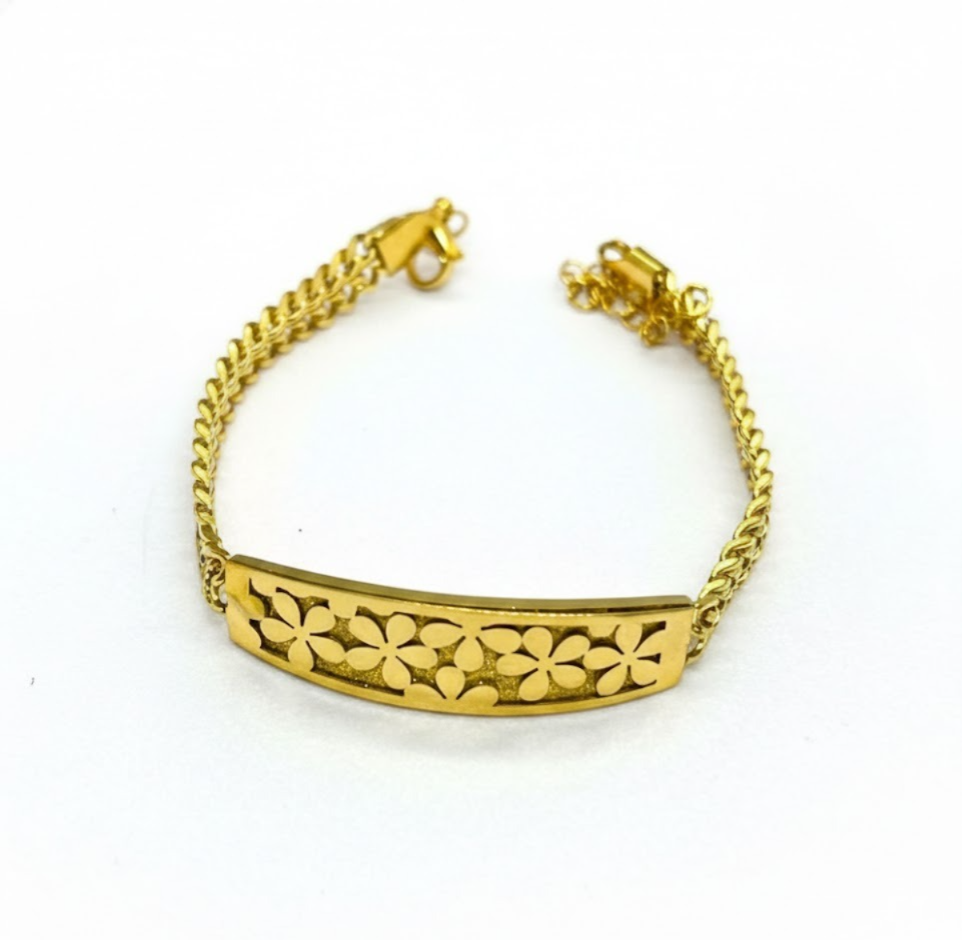 Crafted from high-quality solid gold, the bracelet features a unique pattern that perfectly blends elegance and sophistication. The delicate charm detailing adds a personal touch, making it a must-have for anyone who appreciates fine jewelry. Whether it's for everyday wear or special occasions, this bracelet will effortlessly enhance any outfit.