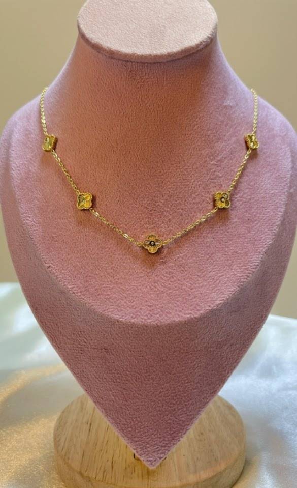 Elevate your jewelry collection with the exquisite Golden Clove Necklace. This beautifully crafted neck chain is a stunning representation of modern elegance, designed to complement any outfit for any occasion.