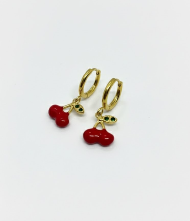 Elevate your accessory game with our stunning Hoop with Red Cherry Earrings. Designed for those who appreciate a blend of elegance and playful charm, these earrings feature a vivid red cherry motif that adds a splash of color to any outfit.