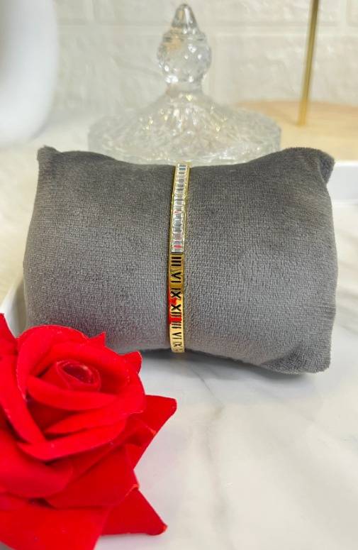 - Unique Design: The beautiful interplay of Roman numerals and stones offers a distinctive look that sets this bangle apart from the ordinary.